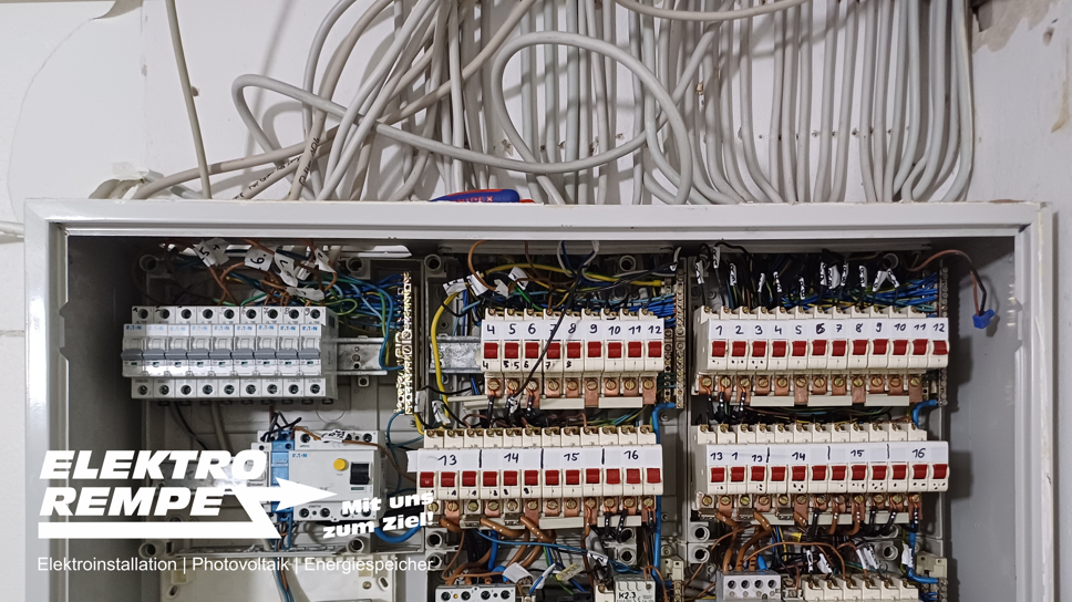 Elektroinstallation in einer Wohnanlage mit mehreren Wohneinheiten.
