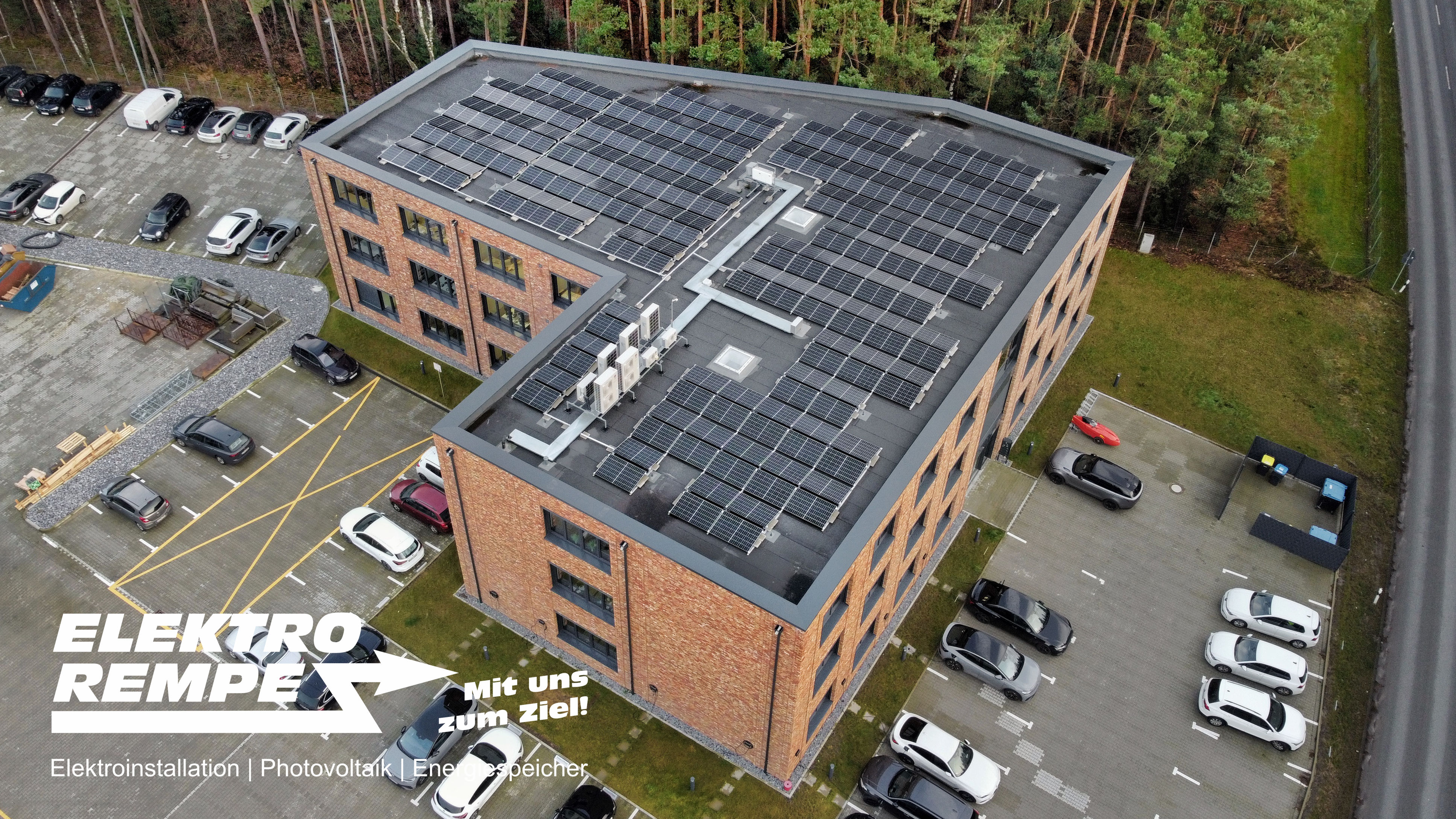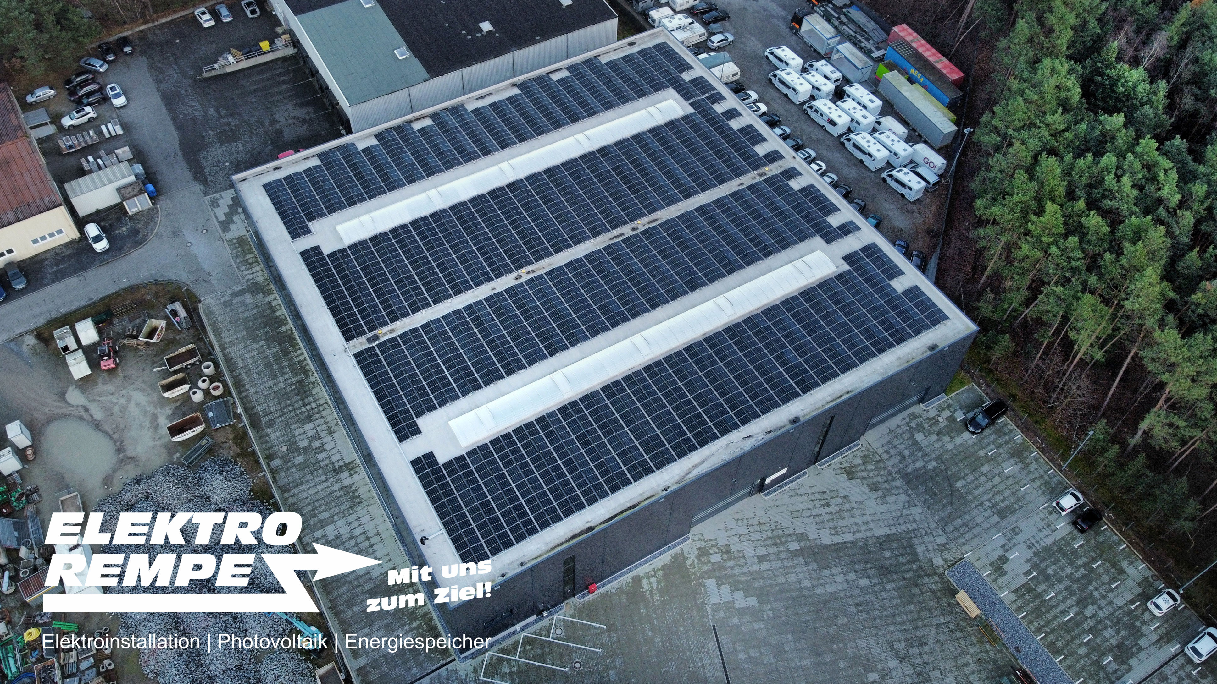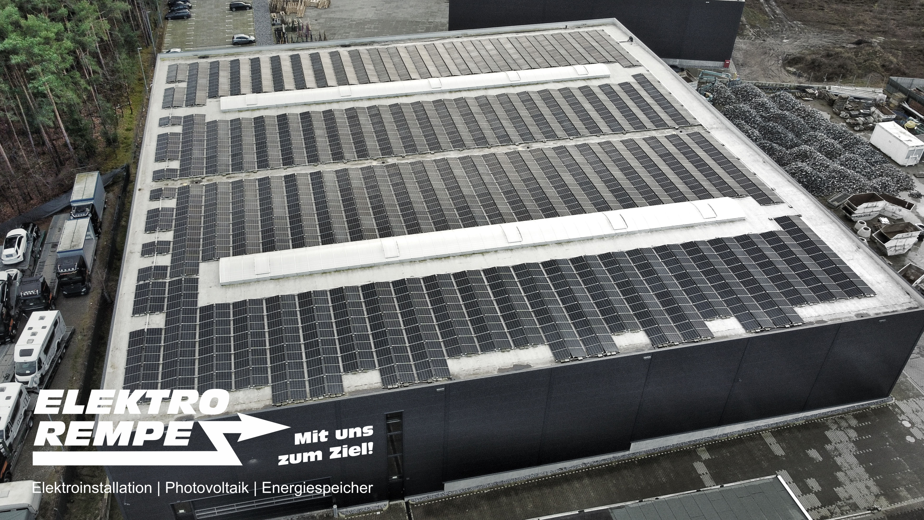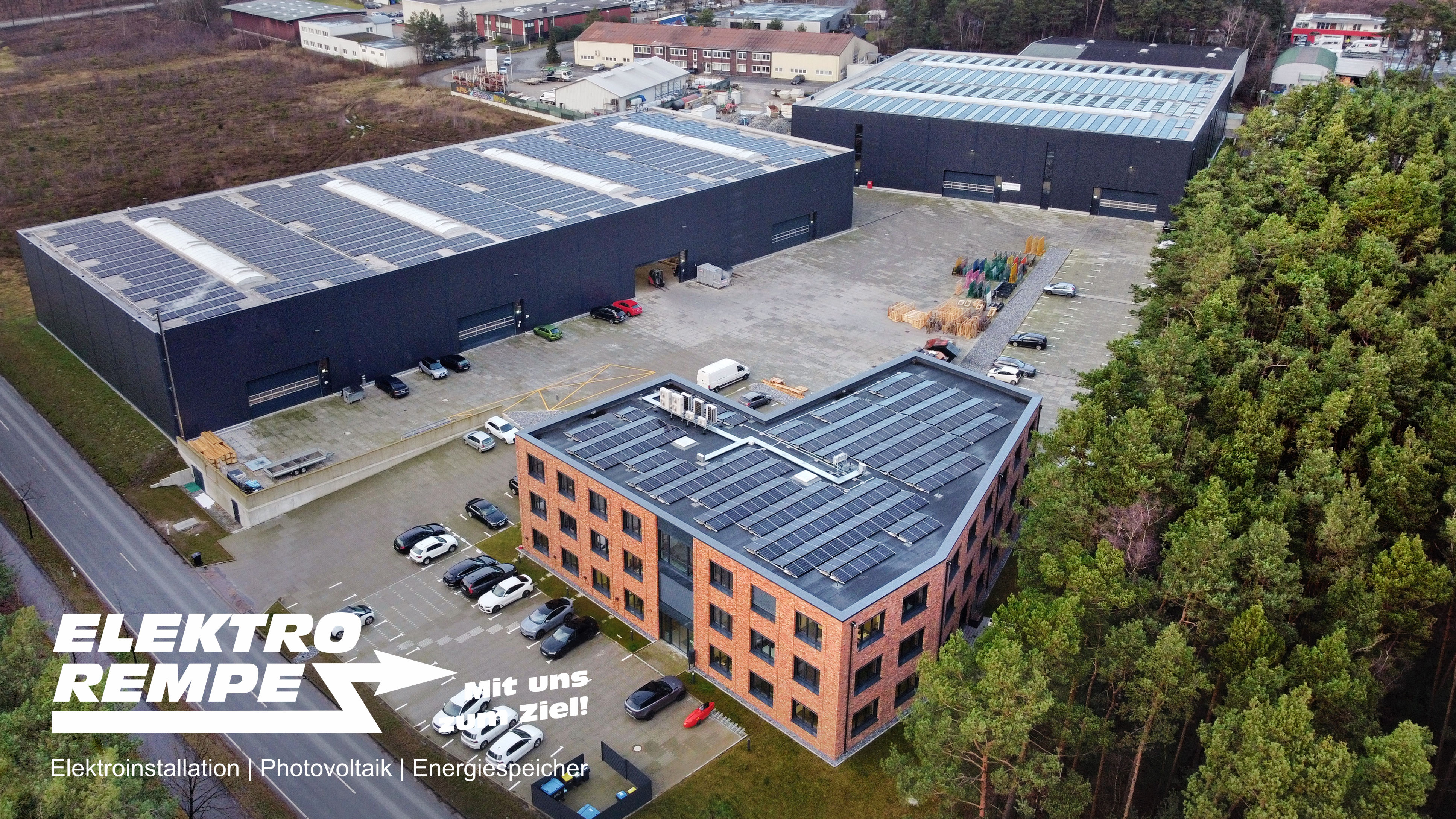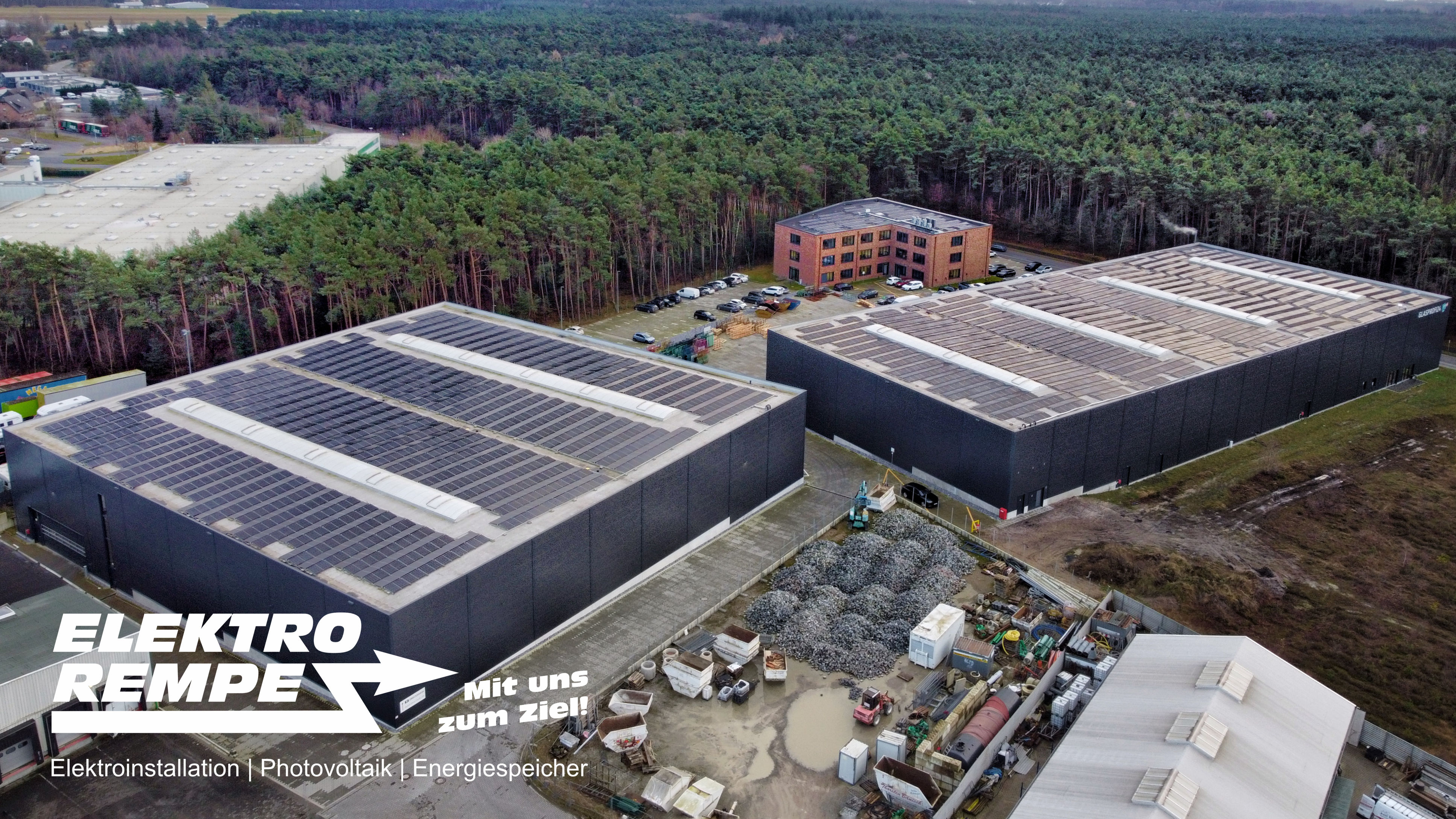 Photovoltaikanlage auf einem Objekt mit zwei Produktionshallen und einem Bürogebäude (2.802 Module).